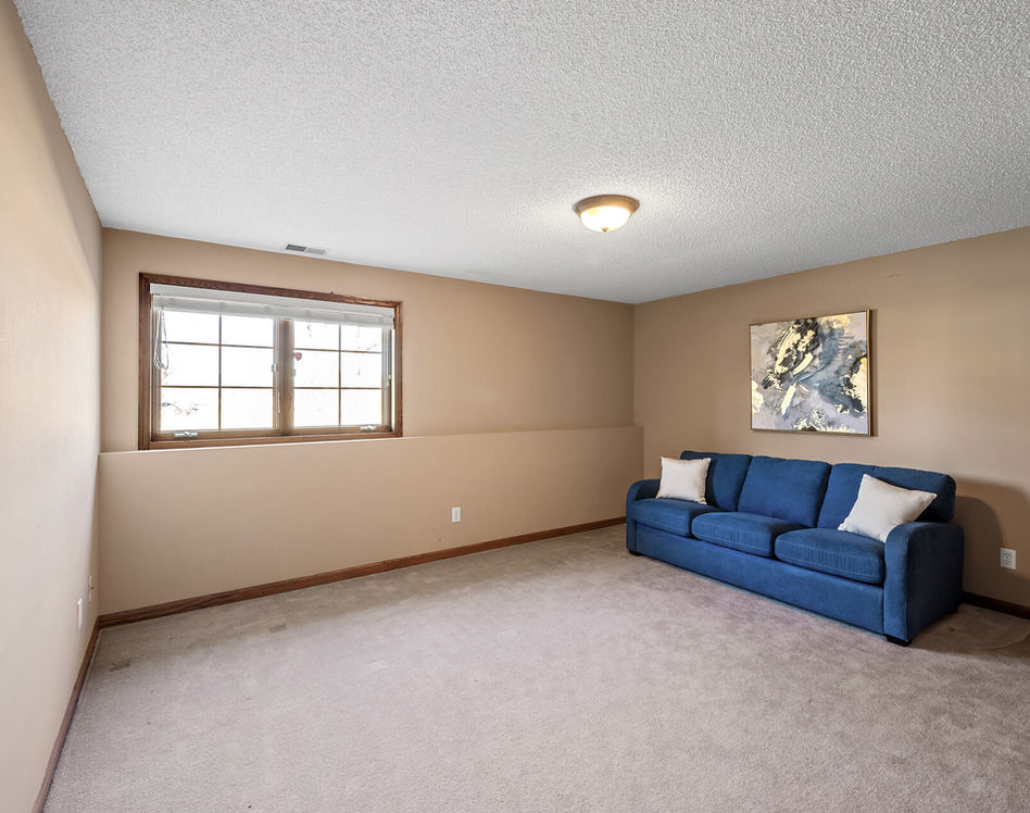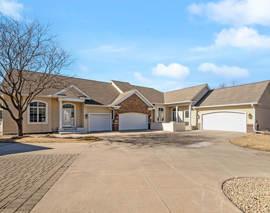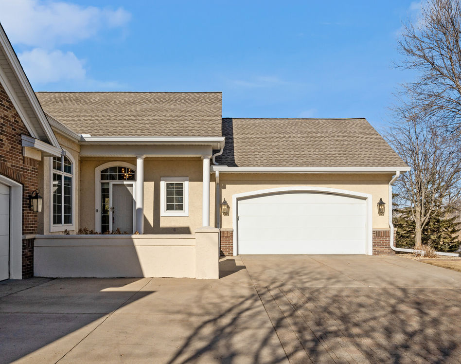 One Level Luxurious Living end-unit townhome features spacious, open floor plan. With convenience of association-maintained development leave the lawn care behind. Perfectly crafted with today's designer finishes and fixtures. The open floor plan features a great room with vaulted ceilings, hardwood floors, stone fireplace and designer kitchen with granite counters and island with beverage center. Large windows let in plenty of natural light. The main floor primary suite features a bathroom with spa-finishes and a spacious walk-in closet. Divided lite French doors lead to the executive office/den. Lower level has a handsome granite fireplace, hardwood floors, lighted art niches, family room with space for a game table, full bath, exercise room & two additional bedrooms. Quiet Cul-de-sac location in The Courts of Nanterre. Wayzata schools.