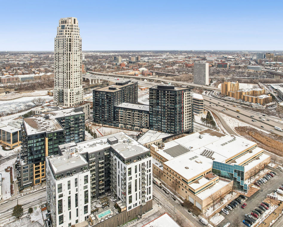 What a community and location, highly accessible building...enjoy close proximity to US Bank Stadium, the River and Stone Arch Bridge! Very well kept 2-bedroom, 2 bathroom condo is the perfect blend of modern and industrial architecture featuring 9 ½’ ceilings, hardwood floors, quartz surfaces, and floor to ceiling windows and 2 parking spaces with super convenient location near elevator. The open concept floorplan offers flexible spaces with fabulous entertaining options and stunning views from nearly every room. The kitchen boasts stainless appliances, a huge quartz island with seating overlooking the living and dining spaces. Spacious primary suite with ensuite bathroom. A secondary bedroom, which would make for a great office, with adjacent full bath, is just down the hall. Stackable in-unit laundry room offers additional storage, too. The underground, heated parking stall is in an ultra-convenient location, next to the elevators. Resort like amenities at The Legacy are above and beyond and include a courtyard with greenspace, in-ground pool, hot tub, patios, firepits, grilling areas, lawn bowling and a dog run plus exercise/fitness room, sauna, golf simulator, game room, lounge and SO much more! An incredible opportunity!