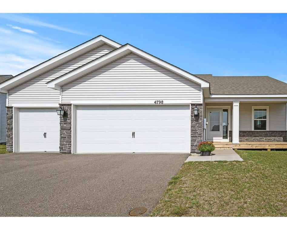 A super charming LIKE NEW located in friendly and fun Oneka Place. Close to many conveniences, grocery, restaurants, walking path, schools and parks. This home was built by D.R. Horton Homes in 2020. The Rushmore model. It has 4 bedrooms and 3 bathrooms, great trendy finishes, and a peaceful backyard. Take in the beautiful views of nature everyday, with the nice backyard that backs up to a pond. The open kitchen has stainless appliances, granite countertops and fun gray cabinetry. The open main floor has vaulted ceilings and great flexibility for dining. Upstairs there are 3 bedrooms, a primary 3/4 ensuite, huge walk in closet and 1 more additional bathroom. Downstairs is perfect for entertaining with a walkout family room, extra bedroom and a MASSIVE crawl space for all of your storage needs. Don't build new when you can buy 4798 Ethan Trail in Hugo!