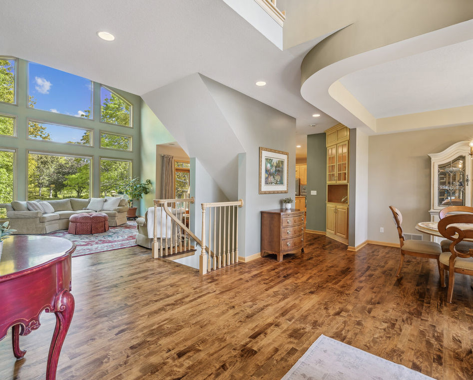 Welcome to this stunning custom built home, formerly a LeGran Builders model, in the quiet Meadow Ridge neighborhood. Nestled on two beautifully landscaped acres, this residence has five bedrooms, five bathrooms and a heated garage with epoxied flooring. The main living areas are impeccably maintained exuding class and comfort. Recently refinished hardwood flooring on the main living level. The open kitchen design with recent updates includes granite counters, large island with a Wolf gas range and stunning hood. Four bedrooms on the upper level are bright and roomy. The Primary suite is spacious with large walk in closet, built in dressers, soaking tub and a generously sized double vanity. The walkout lower level offers an expansive space for entertaining, complete with a recently added wood shop, and an arts/craft room. New roof in 2022. Enjoy privacy in the professionally landscaped yard.